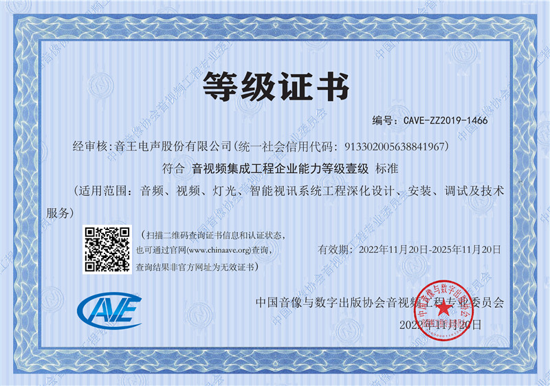 01中國(guó)音像與數(shù)字出版協(xié)會(huì) (音視頻集成工程企業(yè)資質(zhì)壹級(jí))